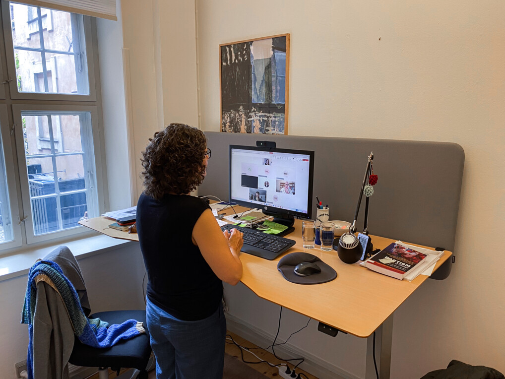 Selvom skærmen giver nye muligheder, stiller den også krav. Det kan være udfordrende at holde koncentrationen i et digitalt rum. Derfor har Stinna Ahrenst bevidst arbejdet med variation og pauser: korte oplæg, refleksionsøvelser, podcasts til gåture og gruppearbejde.