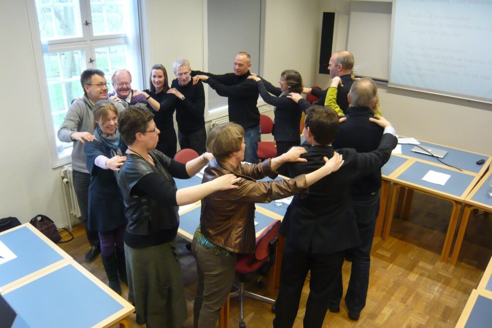 Gode folk fra Aalborg Østre Provsti øver lege for konfirmander sammen med Finn Andsbjerg Larsen i 2012. Deltagere: Ejnar Grønlund, Heine Lokjær Hansen, Marie Kirketerp, Jens Kristian Kristiansen, Peter Anton Krogsøe, Niels Christian Scheel Lassen, Lise Lundgreen, Anette Melbye Madsen, Hanne Kragh Pahuus, Lene Elisabeth Riger-Kusk, Helle Rosenkvist, Per Sørensen, Line Vesterlund.