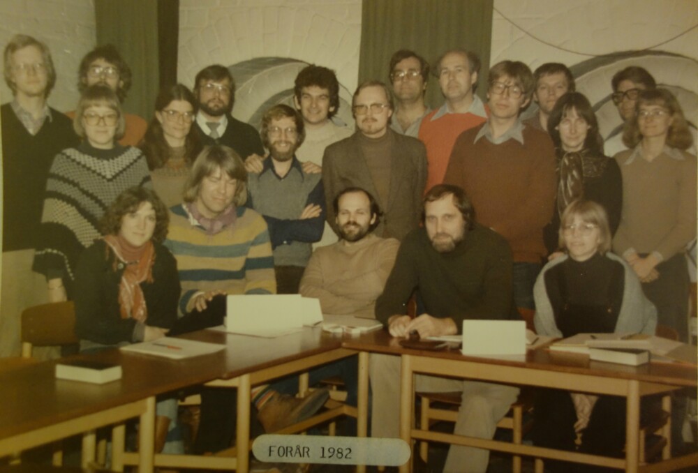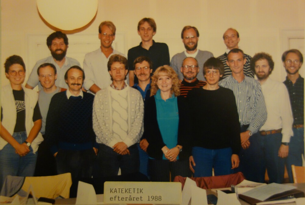 Her ses en gruppe glade mennesker. De er til kursus i kateketik i København i efteråret 1988.