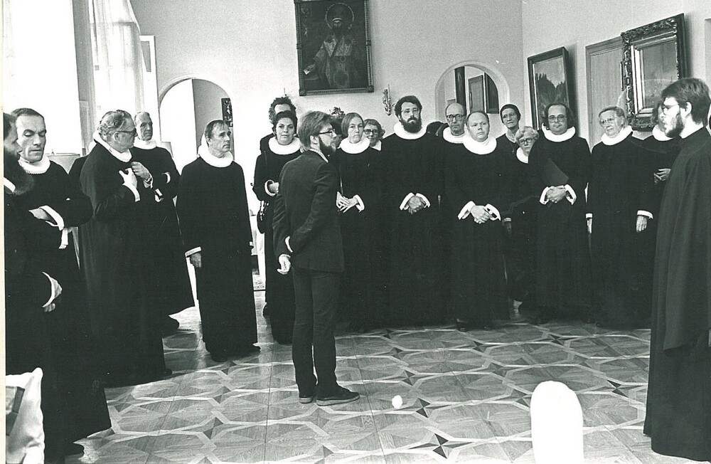 ledet af domprovst Arne Bugge. Dette og de næste to billeder er taget ved mødet med ærkebiskop Pitirim i