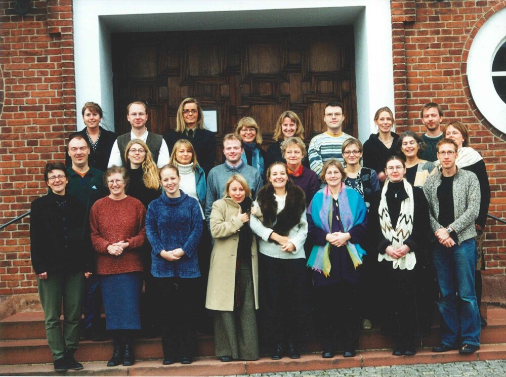 25 mennesker på Skt. Markus Kirkeplads, Aarhus, i foråret 2000, herunder en nuværende lektor i FUV. Få uger senere var de klar til embede i folkekirken.