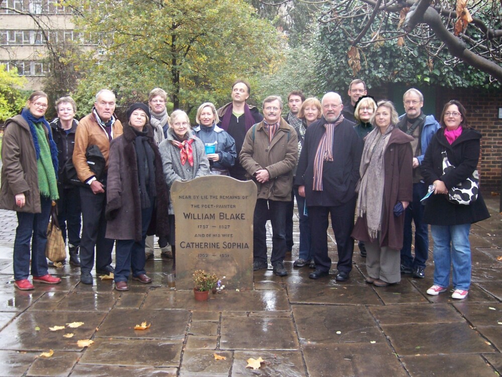 Ført an af Benny Grey Schuster rejste disse mennesker i 2007 til London i forbindelse med kurset om William Blakes poesi og billedverden. Her står holdet foran Blakes grav på Bunhill Fields Cemetary. Deltagere fra venstre: Kirsten Winther, Erik Bock, Inger-Lise Pedersen, Kirsten Bøggild, Torben Bramming, Jette Walther Birk, Nynne Reddersen, Tom Friis, Jan Ulrik K. Dyrkjøb, Jakob Sandal, Kirsten Evald Grønbech, Niels-Jørgen Jørgensen, Birthe Andersen, Susanne C. Knudstorp, Lars Seeberg, Tina Buchwald.