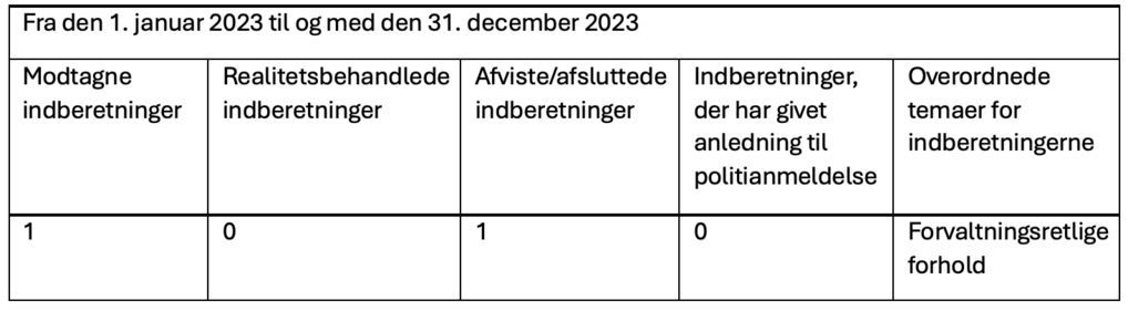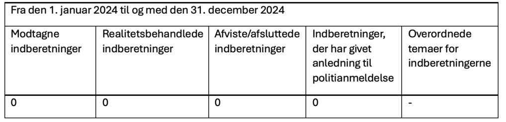 FUV har modtaget følgende indberetninger til whistleblowerordningen: